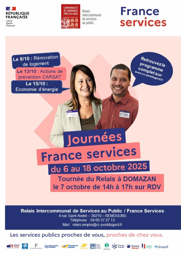 https://domazan.fr/actualites/france-services-tournee-du-relais-a-domazan-le-mardi-07-octobre-2025-de-14h-a-17h-a-la-mairie/
